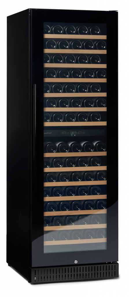 Frittstående og fleksibelt God lagringskapasitet To temperatursoner på 4-12°C og 12-22°C Sotet og herdet glass Uttrekkbare trehyller på skinner Ledlys og digitalt termostat Dørlås